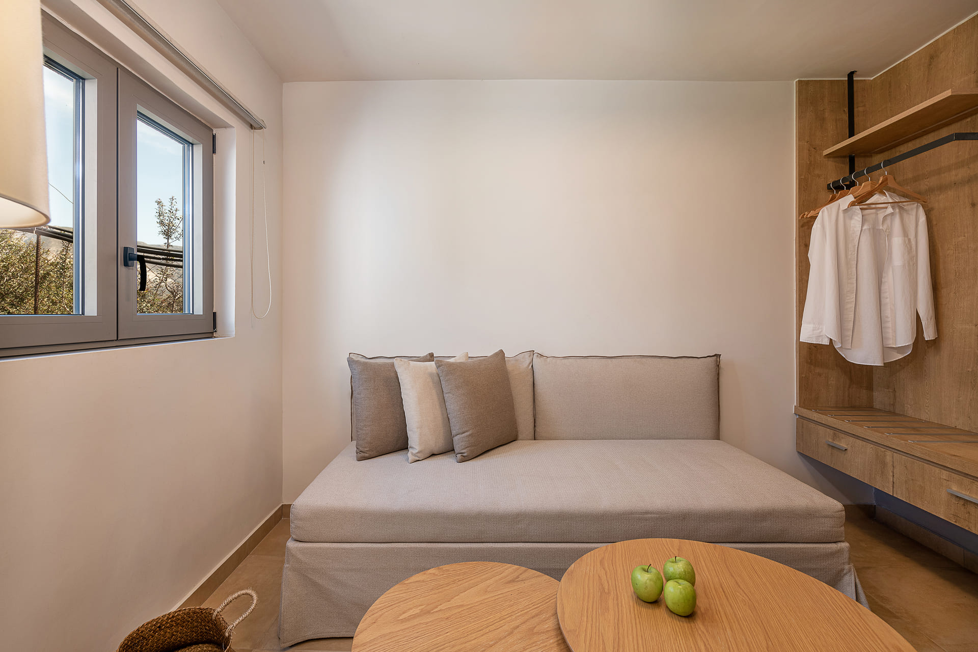 Mouses Deluxe Bungalow is an independent two-room bungalow of 24 m² with garden view. In the first room there are two single beds joined together and a kitchenette. In the second room there is a small living room with a double sofa that turns into two single beds suitable for two children.